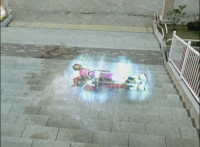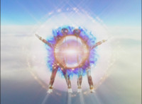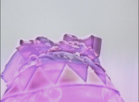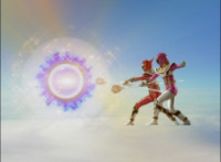 Initially altered to fit viewing ball; shots 1 & 2 are reedited to remove crossfade between; cuts follow-ups of where she summons her shield. |
