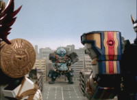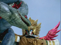 Solar Streak Megazord is dazed, but gets defended by Mystic Minotaur, Mystic Garuda, and Mystic Mermaid, prompting all four to rush forth. |