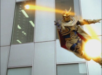 Solaris Knight fires the Laser Lamp, the golden beam forming into an energized form of Jenji, streaking forth. |