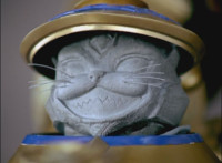 In the Laser Lamp, tiny Jenji pops his head up, as he suddenly turns to stone, since you were gone, he turns to stone. |