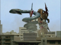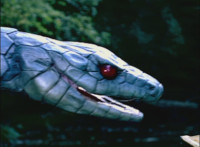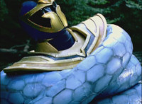 Serpentina reacts, Manticore Megazord jerks their arm and seems to talk. Serpentina morphs into a giant snake and wraps around Manticore Megazord's staff. Serpentina talks at the Megazord, Red reacts, and their wings ignite, sending fire around the staff, burning Serpentina back into normal mode, dropping her roughly across the city. |