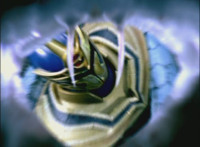 Serpentina snakes about, then launches forth, only for Solaris Knight to dive in and fire his Laser Lamp, spark bursting her. |