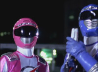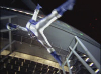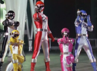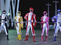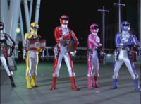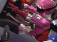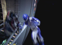 The five control console cases drop down from the night sky, landing in each Ranger's possession. Red then leads the team in flipping over the camera. |