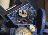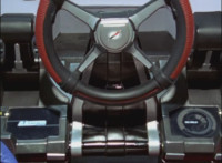 Ultrog clashes his blade to DriveMax Megazord's saber, unleashing a blue wave of energy that sends the Megazord sliding backwards, shaking up the cockpit, as it falls over. Red talks as he sits up in the sideways cockpit. |