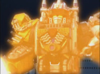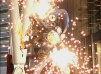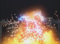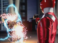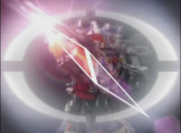 Cropped; cuts follow-up of Megazord spark burstingily striking Ultrog a few times. |