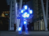 Ultrog fires a bolt of blue energy to our right, spark bursting down all the Rangers but at least one. |