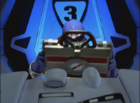 Blue sits down in his cockpit, installs his control console, inserts his Overdrive Tracker. |