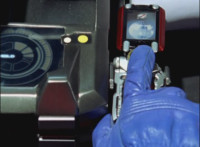 Ultrog stands there cowering as we see him on the Drive Defender scope screen. |