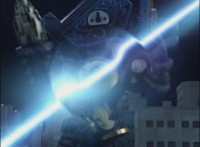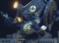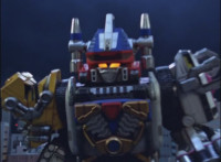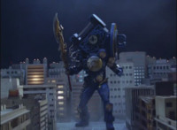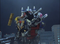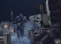Cropped; cuts two follow-ups of the Megazord appearing in the city and Ultrog reacting. |