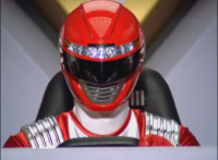 Zoom out from Red in the DriveMax Megazord cockpit as his teammates respond to him. |