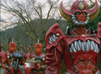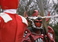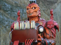 Circle around Moltor as he gestures and talks, then points back at the weather device, which a Lava Lizard lifts up. The Rangers react, Pink for instance has something to say about it. Moltor then talks some more, pan back to the Lava Lizards, activating the weather device. The Rangers ready Drive Defender sabers and rush at Moltor, who rushes at them with his own blade, sparkily slashing Ranger after Ranger, locking blades with Red briefly, before slashing down Pink, then turning his attention back to Red. |