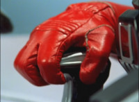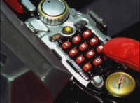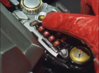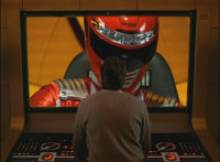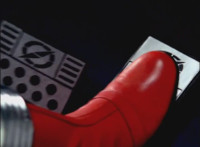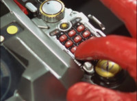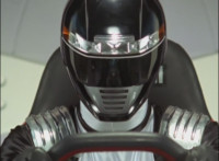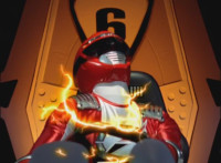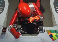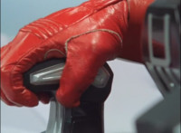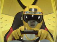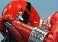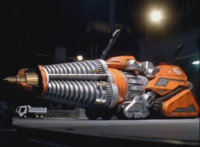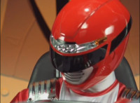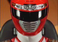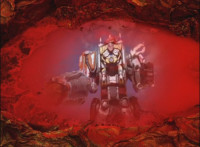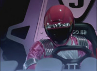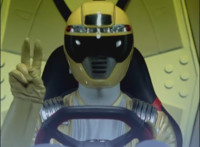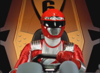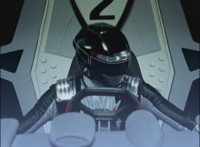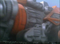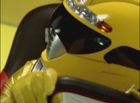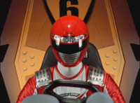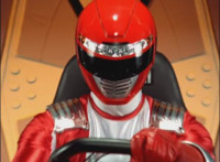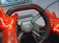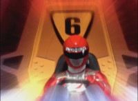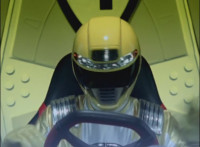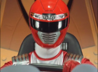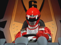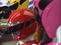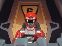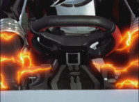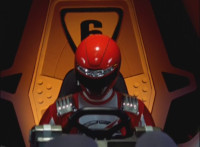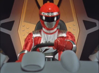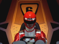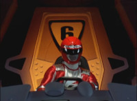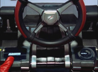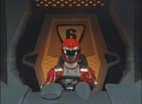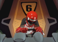 Track over to the Drill Driver Zord, Red gets situated in the cockpit, installs his console case, and Overdrive Tracker, then grabs the steering wheel, nod-talks, hits a pair of buttons, then accelerates the turbo wheel. Drill Driver's drills start spinning. Red grips the controls, steps on the pedal, Drill Driver rolls out, Red having a trippy zoom in within the cockpit to imply the sudden motion. |