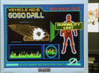Drill Driver sits in the hangar, twisting its drills. Red grips the controls, push in on him as he nod-talks in the cockpit. Then we see a monitor display showing schematics and a warning that he's undergoing "durability limit". |