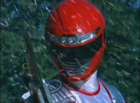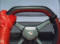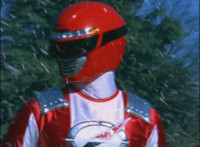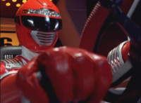 In his Zord cockpit, the steering wheel locks into place as we pan up to Red. |