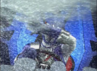 Red stands up, then turns around to see Moltor leaping in with his sword, his attempted slash dodged. Red dives and reacts, Moltor pulls out his second sword and talks. Red whips out his Drive Lance, then faces his enemy, a quick split-screen appears before both rush in and begin to fight. They keep a good pace with each other at first, until Moltor gets the upperhand and sparkily slashes Red a few times until he falls down, where he taunts him. |