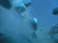 Cropped; cuts prior stuff of the trio rising out of the water, then coming together; shots 5 & 6 are shortened to reduce dialogue. |