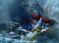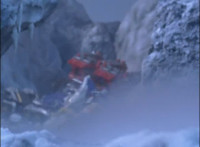 All five DriveMax Zords plummet into a snowy chasm. Red slides across the ground, and talks into his Overdrive Tracker, before looking back. |