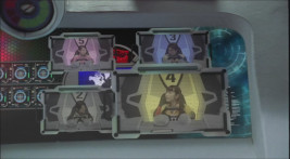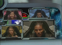 Close-up of the Drill Driver's console display, showing the unmorphed Rangers. |