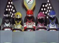 In the Megazord cockpit, all five Rangers exclaim simultaneously, cut in closer with close-ups of each one on a split screen. |