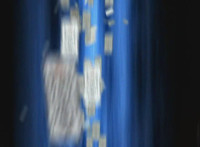 Countless pieces of paper go flying up a blue vertical vortex. |