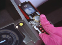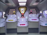 Cropped; recycled, per source; cuts follow-ups of Rangers nod-talking in the Pink-less Megazord cockpit then Red pressing buttons on his Tracker. |