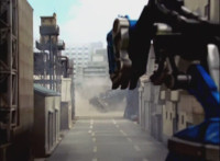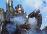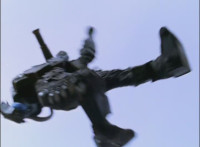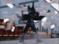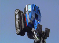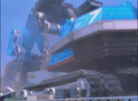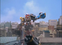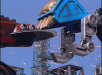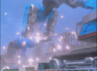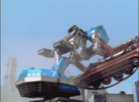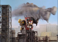 Cropped; cuts follow-up of Bombardo recovering to face the Megazord. |
