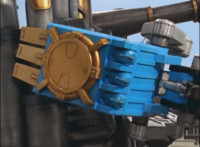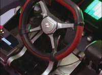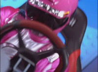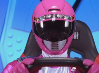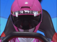 Shovel Driver folds up, Pink continuing to pilot, before locking onto the DriveMax Megazord. Pink then rises up in the Megazord cockpit, installs her console case, steering wheel popping up. |