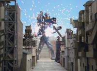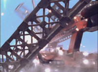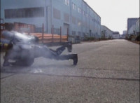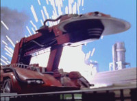 Saw Tank continues to drive along causing spark bursts in the construction area around it. |