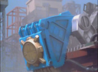Sticking her Overdrive Tracker in the side slot, Pink is in the Shovel Driver cockpit, taking the wheel in a zoom in. Shovel Driver drives forth, Saw Tank does too from the opposite side, Pink grips both controls, opens the shovel, and sparkily clamps it down like a mouth upon Saw Tank's saw when they meet. They break off for a second, then clash again. Pink speaks, hits the pedal, pushing Shovel Driver forward more, sparkily clashing some more, until suddenly Pink is jolted in her cockpit, and Shovel Driver rolls backwards over the edge of a structure. Pink hits the pedal again, causing Shovel Driver to extend a bar that halts it from plummeting over the side, pinning it on the wall in place. Pink looks up, as Saw Tank rolls forth with sparks around it. |