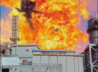 Saw Tank explodes massively, sending Bombardo and the jewel flying away from the blast. |