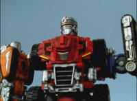 Super DriveMax Megazord completes explosively. |