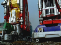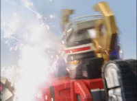 Cropped; cuts follow-up of Megazord getting moving. |