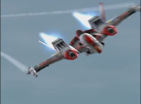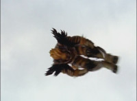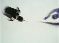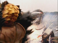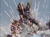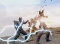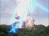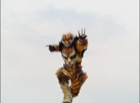 Cropped; recycled, per source; cuts follow-ups of Ultrazord flying around avoiding Cheetar's electricity blasts. |