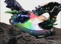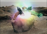 Cropped; cuts follow-up that has the energy approaching the Ultrazord and dissipating. |