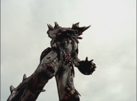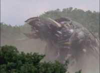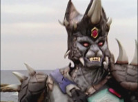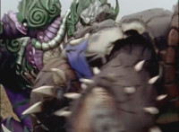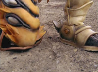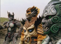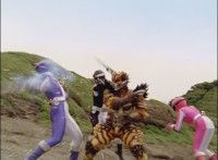 Cropped; cuts prior shots of monster and Megazord/Rangers preparing for battle; cuts follow-up close-up of Cheetar. |