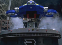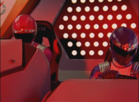 Zoom out from Red as he and the Rangers nod-talk in the cockpit at once. |
