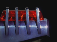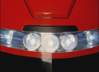 Close-up beauty shots all over Mercury Ranger's suit, body, and LED-abundant helmet. |
