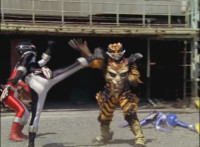 Cropped; recycled, per source; cuts follow-ups of Ultrazord fighting Fearcats. |