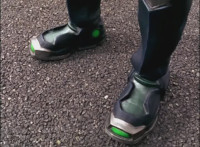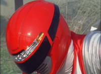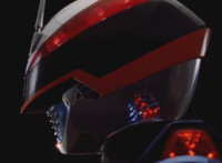 Red's helmet headlights light up, as the Defender Vest forms around his body. |