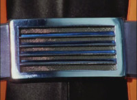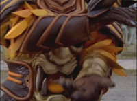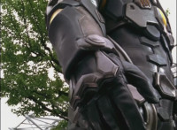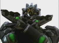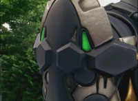 Close-up of Benglo's chest gyro spinning, then pan up to is head as he talks and his emblem glows. |