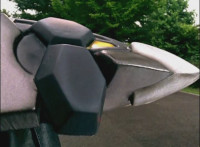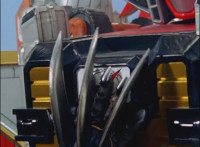Red looks down and presses buttons and works controls, igniting DriveMax Ultrazord's thrusters, which blasts Mig away as the Ultrazord flies straight up with Benglo still attached, until Red works the controls and releases the Fearcat from it, causing Benglo to plummet back down. |