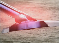 Mercury thumbs the handle knob until a light blinks on the Drive Detector, as he converts it into metal detector mode and holds it downward. |