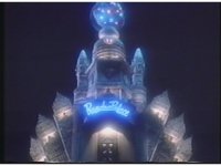 Reverses briefly to extend shot; lightning effects superimposed from ZYU #19; darkened; "Bandra's Palace" sign matted out. |