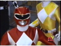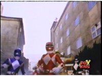 Sharp zoom in on Red Ranger, looking upward at us, in front of Black & Yellow, solemnly. |