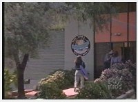 Exterior of Youth Center, slow zoom in on sign as two women head inside while a guy opens and holds the door for the first one. |