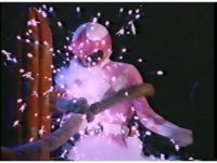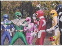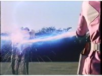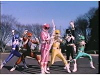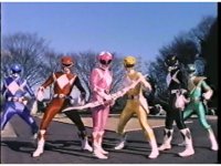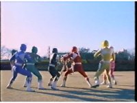 Five Rangers remain together as Power Blaster unleashes five beams of power at the screen. |