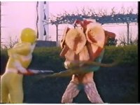 Close on Yellow readying Blade and thrusting it forth. |