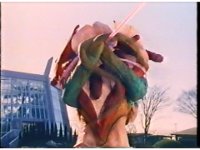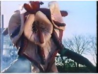 Close on Bloom of Doom's head, as he shakes it back and forth, causing loads of confetti to spew from the top. |