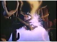 Repeat, closer, on Pink bursting with sparks and smoke, causing her to fly back and fall down. |
