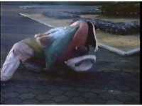 Knocked out of the other dimension, Bloom of Doom falls and rolls onto the cement, but gets up, dazed. |